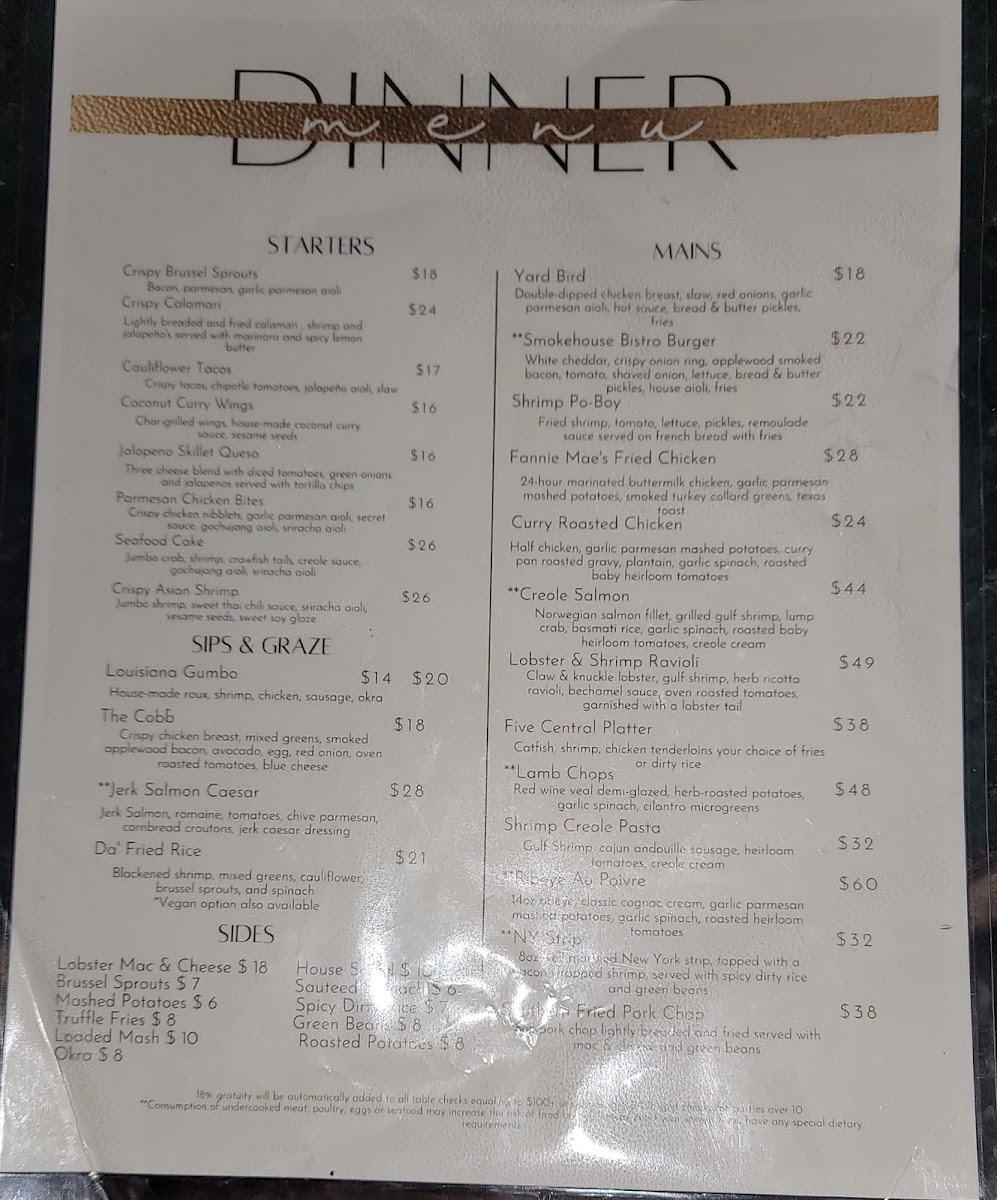 Welcome to Five Central, a vibrant dining destination nestled in the heart of Houston, Texas. With a menu that embodies bold flavors and culinary creativity, this restaurant promises an unforgettable experience. Their Sips section features the rich and enticing Louisiana Gumbo, boasting shrimp, chicken, sausage, and a house-made roux that warms the soul.